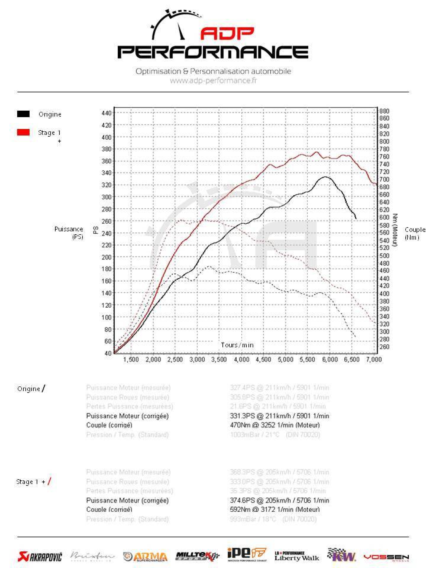 ▒ Origine : 331.3 PS - 470 Nm (annoncé 350 PS - 440 Nm)