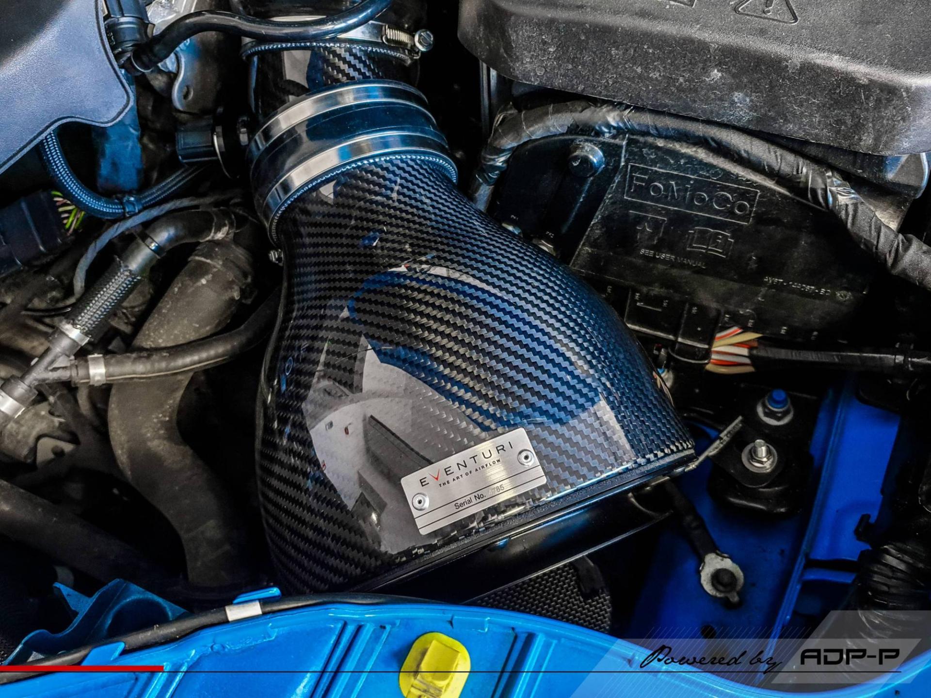 Par la suite, nous avons fournis et installés une Admission Carbone Eventuri qui en plus d'être sublime s'avère vraiment efficace notamment grâce à sa prise d'air et conduit placé sous le véhicule en façade qui assurera une alimentation en air frais et direct pour l'admission dynamique placé au dessus.
