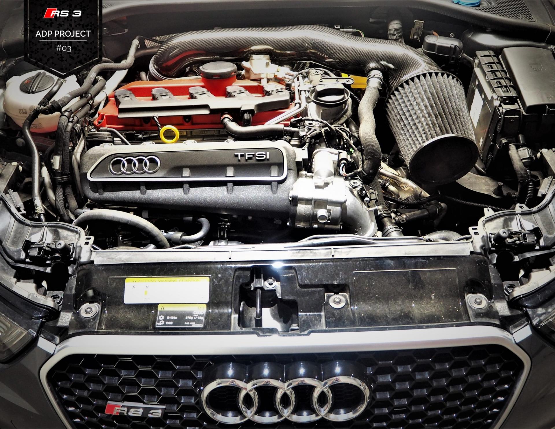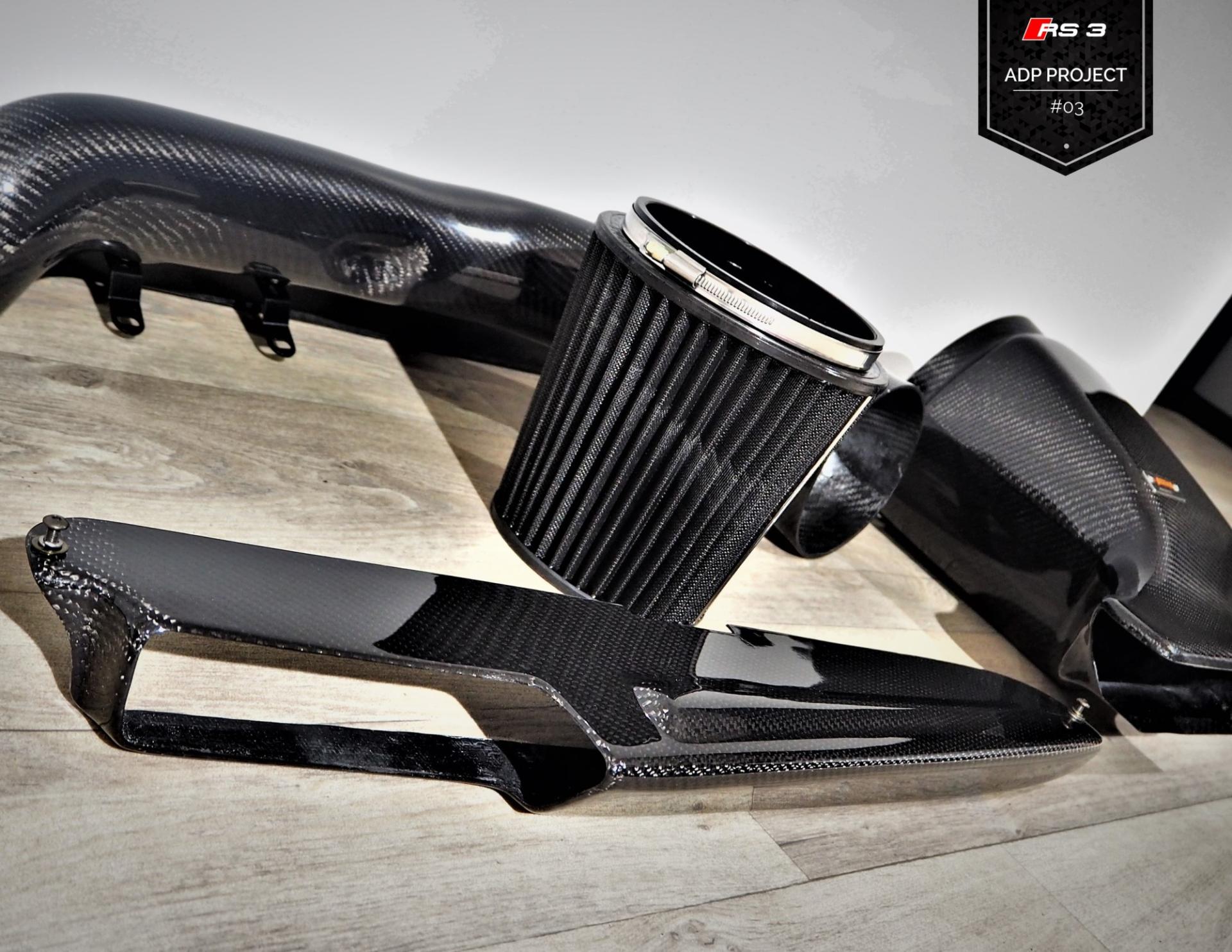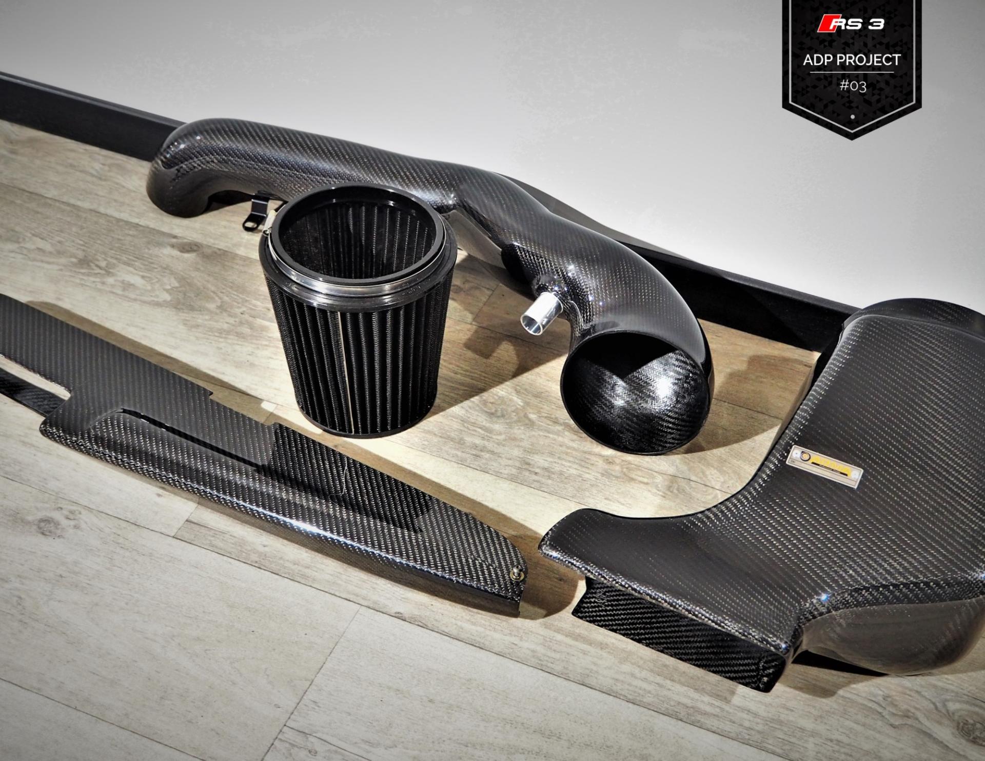 La préparation continue sur notre Audi RS3 ! Après le Stage 1, place aux pièces performances en vue du stage 2 (et plus)… et ça commence avec une admission en carbone de chez ARMA Speed !